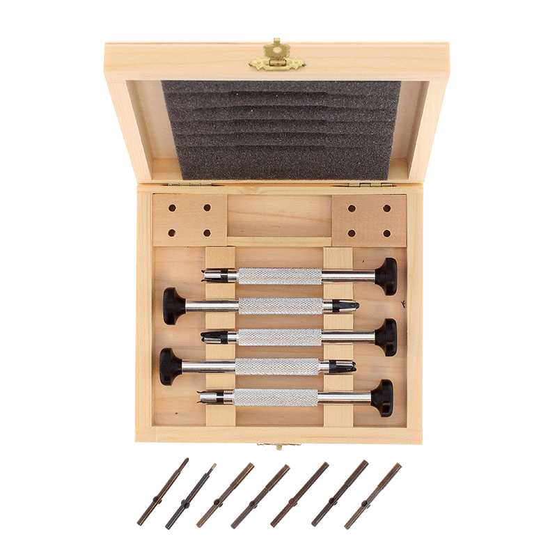 • 1 Wooden box with 5 handles and 7 blades