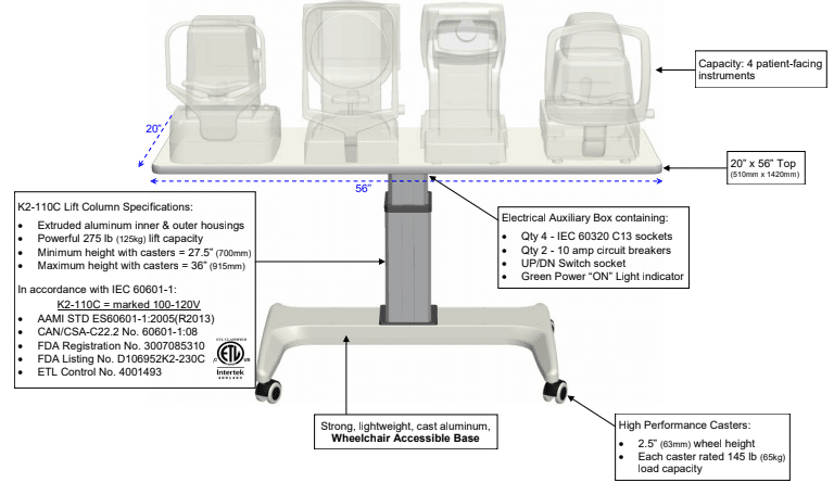 Facilitate up to three instruments with this space-saving table, featuring dual lift and effortless wheelchair accessibility