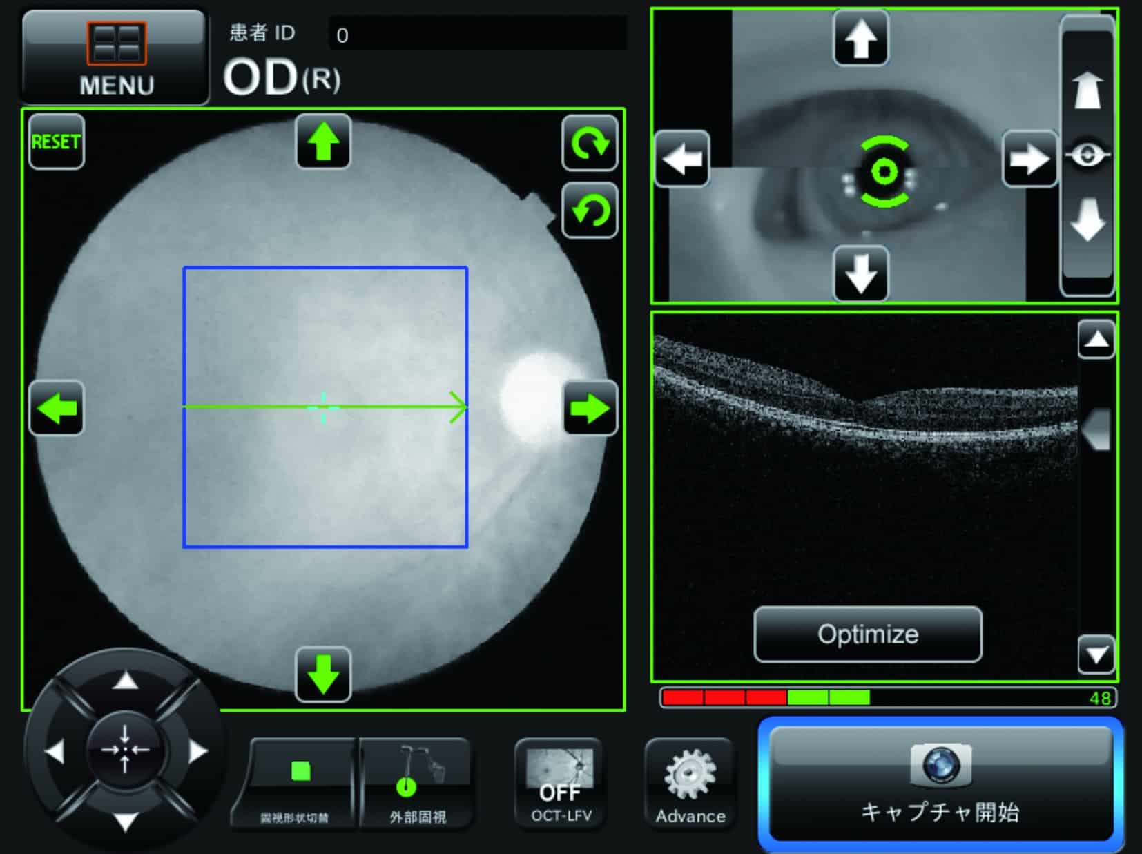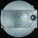 OCT-LVF is a live projection image with reflection of the retina. It gives a clear live fundus image with clear sight of the disc, retinal vessels, and scanning position.