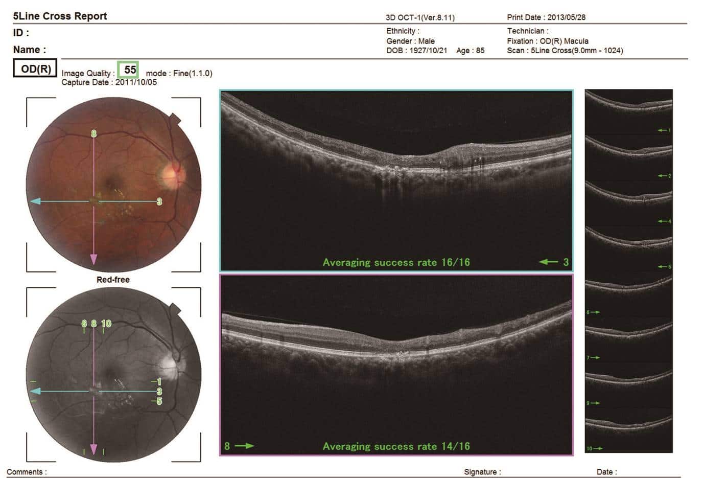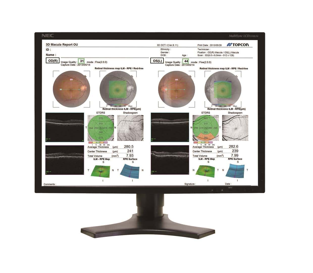 The 12mm x 9mm wide field OCT scan for the optic nerve and macula provides a fast screening and clear overview in a single image.