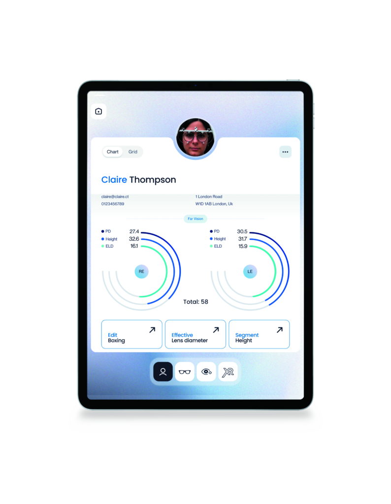 EYERULER2PRO is a compact iPad Pro-based measurements solution providing highly-accurate centration parameters for entry-level to high-end lenses. It also includes a frame comparison module enabling the ECP and client to choose the most adapted frame.