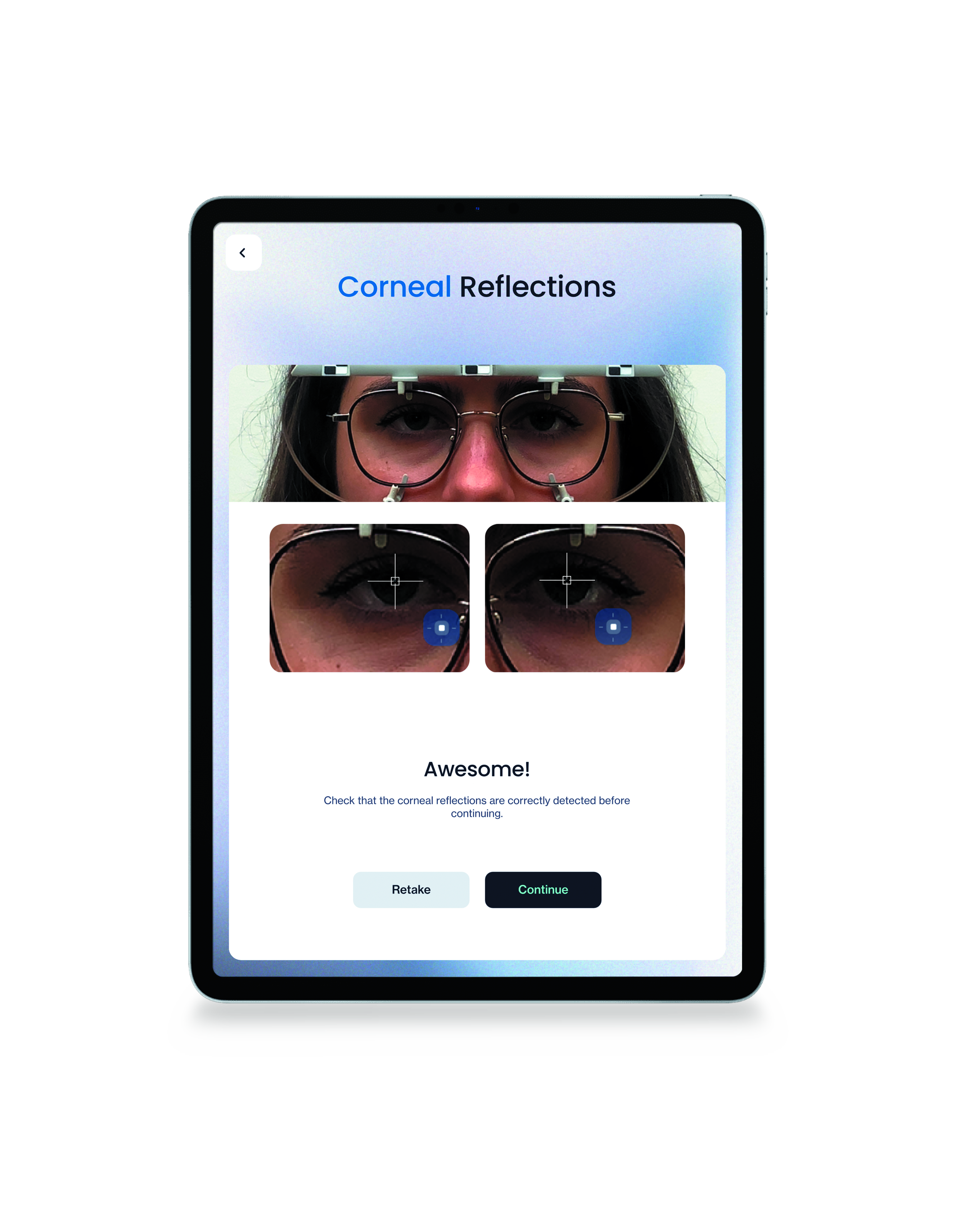 Does not use an Eye-Ruler 2 jig as the software uses the embedded flashlight from the iPad Pro to generate the corneal reflex