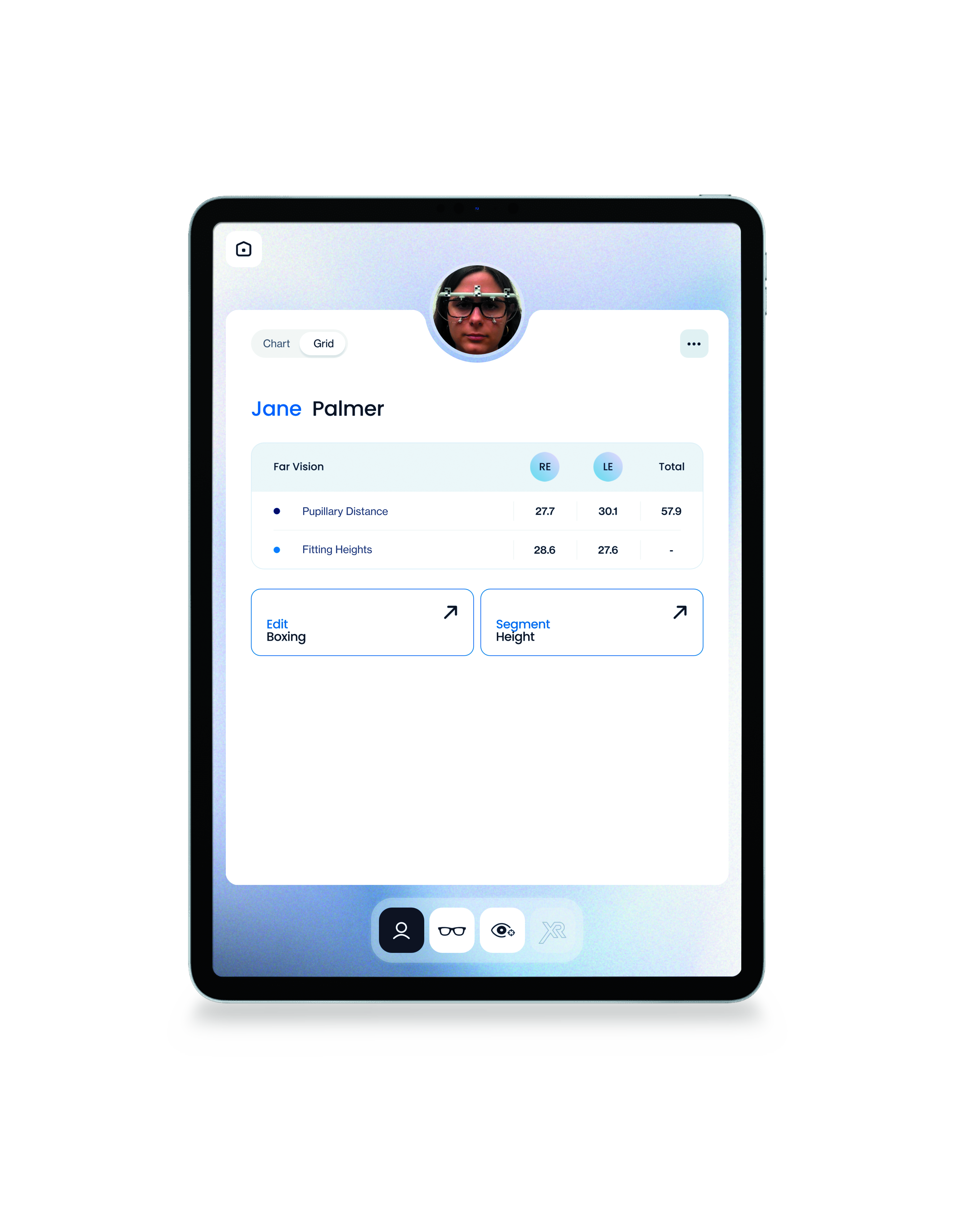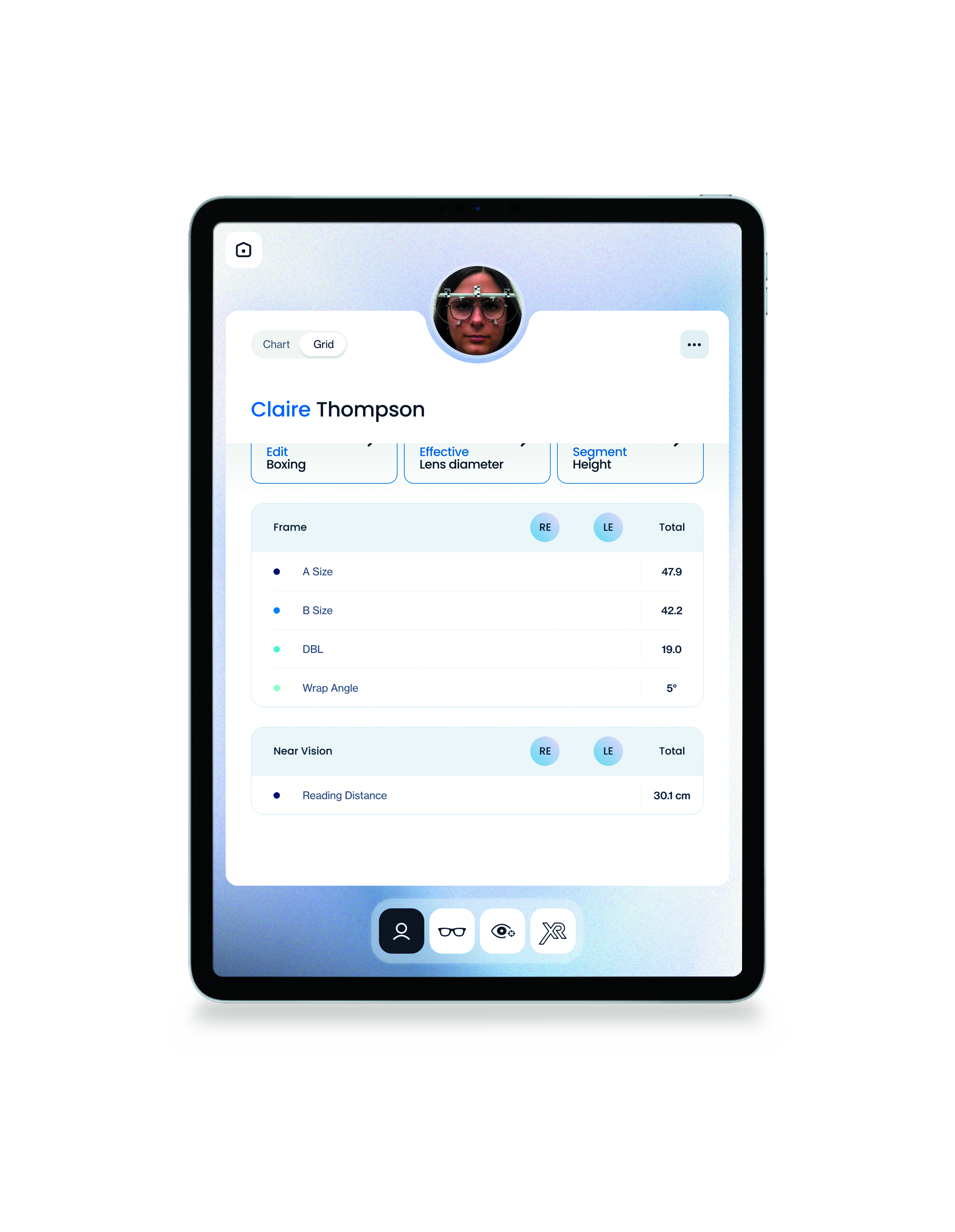 EYERULER2PRO is a compact iPad Pro-based measurements solution providing highly-accurate centration parameters for entry-level to high-end lenses. It also includes a frame comparison module enabling the ECP and client to choose the most adapted frame.