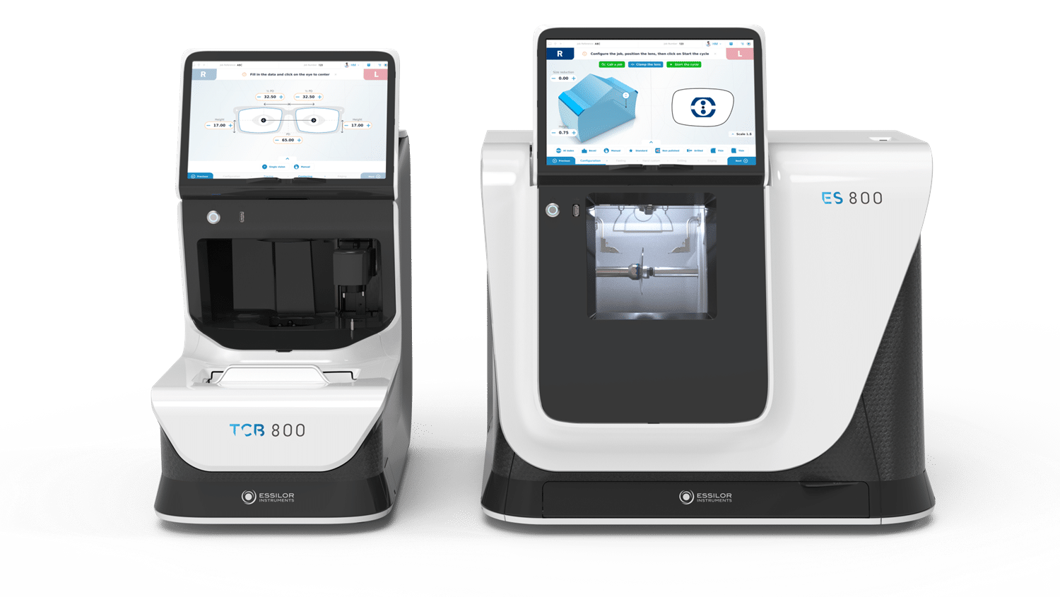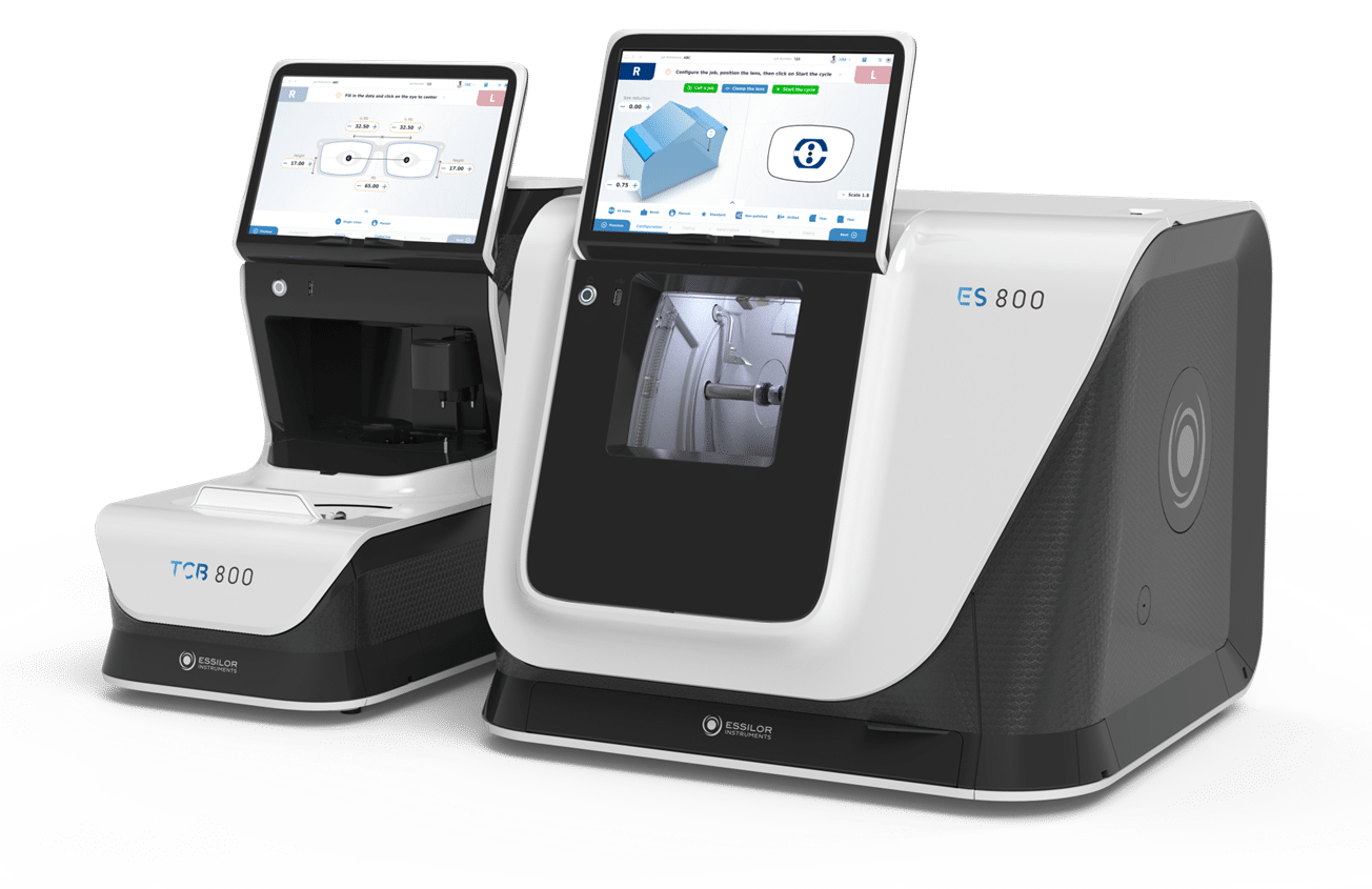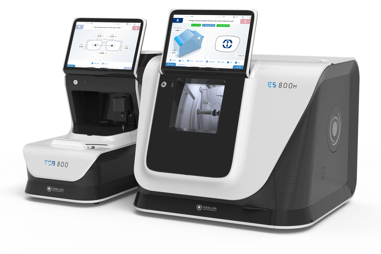 ES 800 is a compact and user-friendly in-office edging system. It is the perfect solution to demonstrate your craftsmanship, reveal your creativity, and reinforce your expertise while enhancing the value of your work. It is composed of the ES 800 edger and the TCB 800, automatic tracer-centerer-blocker and its hybrid version, the ES 800M edger, with a dual technology that combines milling and grinding, is capable of securing hydrophobic or delicate lenses.